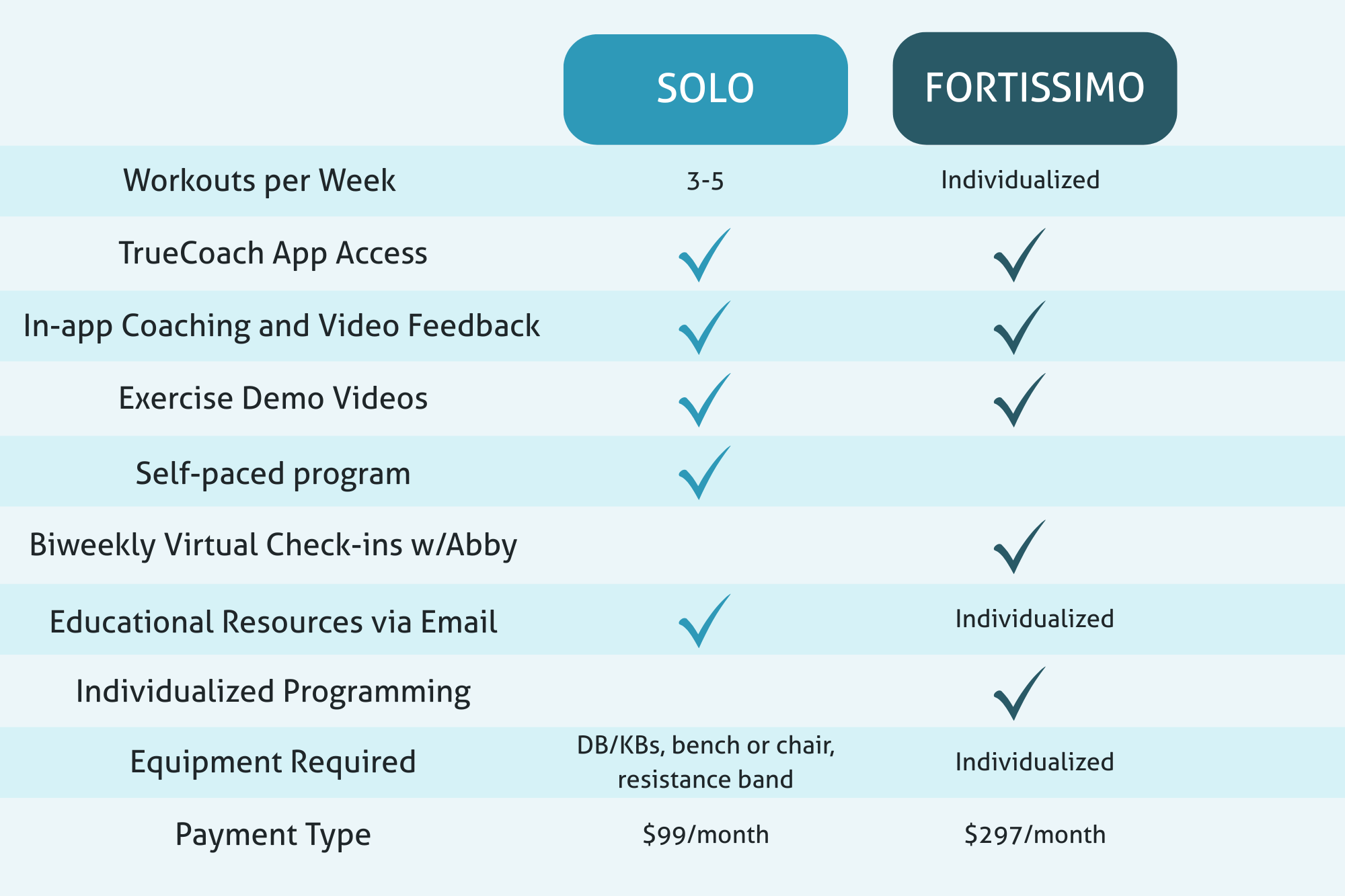 While this is not a physical therapy service, Fortissimo coaching is great for those who want to keep moving toward their goals while dealing with or recovering from injury or other health-related issues.